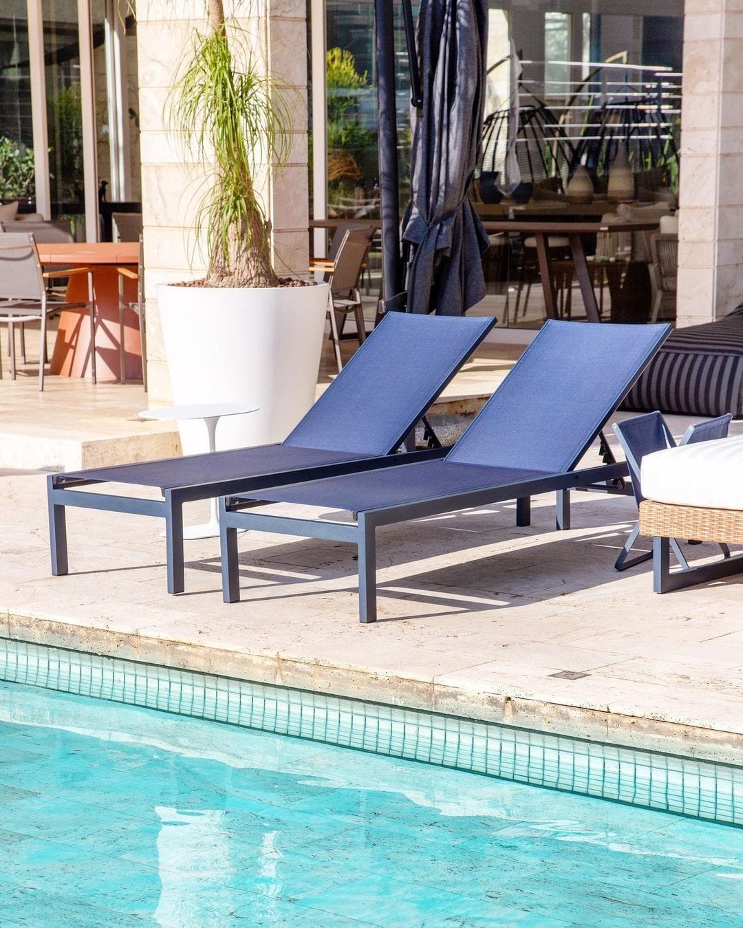 Os tecidos que acompanham esses móveis são tecidos impermeáveis, que ajudam na conservação do produto quando exposto à chuvas.